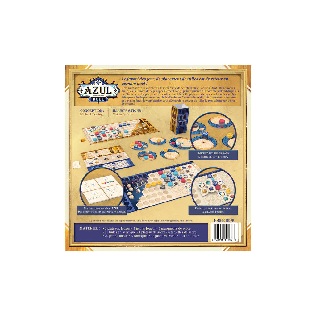 Azul - les Vitraux de Sintra Azul : Les vitraux de Sintra vous accueille de nouveau dans l’univers d’Azul. Les joueurs ont maintenant pour défi de décorer les fenêtres de la chapelle du palais royal de Sintra, au Portugal. 8 + 30 - 45 min 2 - 4 joueur(s)