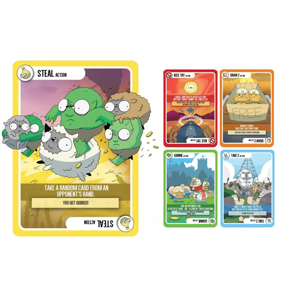 Taco Chat Poulet Poutine Pizza Gardez bien ces 5 mots loufoques en tête. Dès qu’une carte correspondant au mot annoncé est révélée, tapez la pile centrale. Le dernier ramasse tout! Soyez observateurs et vifs pour vous débarrasser de toutes vos cartes! La moindre erreur vous coûtera des cartes de pénalité: ni feinte, ni approximation dans ce jeu...