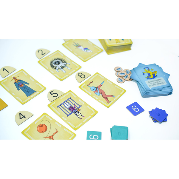 Trio Soyez le plus rusé pour déduire quels numéros sont dans les mains adverses et sur la table. Trouverez-vous les trios de cartes identiques ? Un jeu brillant qui n’a pas fini de vous surprendre !La règle est très simple :1- Dévoilez 2 cartes Numéro :• soit sur la table,• soit dans la main d’un joueur, mais attention, seulement le plus petit n...