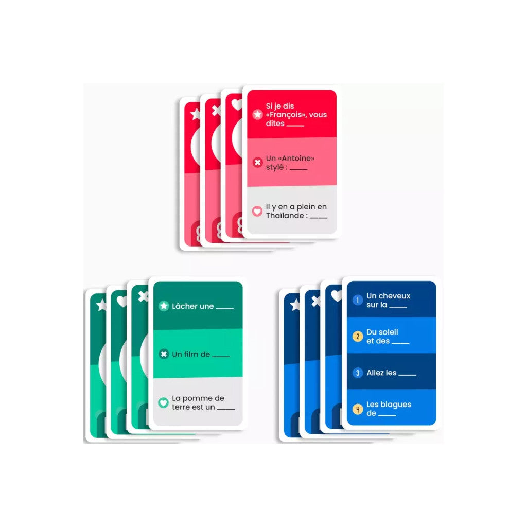 Ah Ouinnn ? Edition 25 + Un jeu pour apprendre à se connaître, parfait en date. L’idée de ce jeu consiste à deviner l’ordre de préférences des autres joueurs parmi 5 sujets. Plus vous devinez avec précision, plus vous gagnez de points. 1. Tire 5 cartes. 2. Devine l’ordre de préférence de ton ami(e). 3. Révèle tes choix. Dis Ah Ouinnn? J'pensais ...