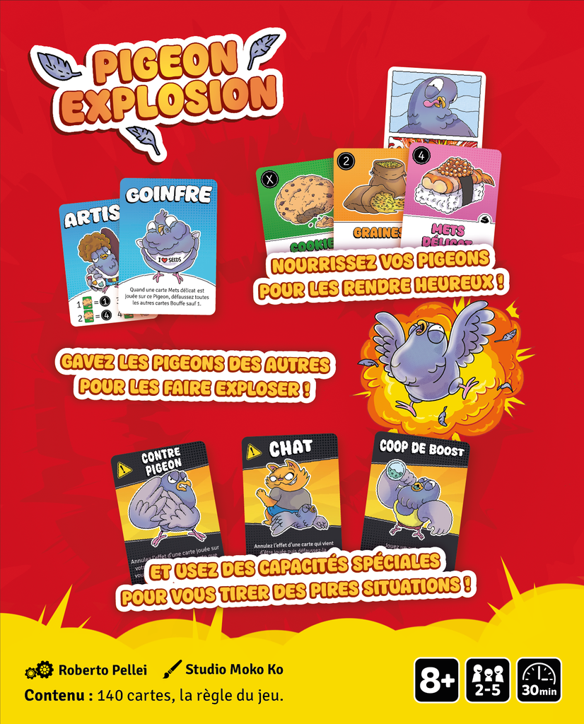 Taco Chat Poulet Poutine Pizza Gardez bien ces 5 mots loufoques en tête. Dès qu’une carte correspondant au mot annoncé est révélée, tapez la pile centrale. Le dernier ramasse tout! Soyez observateurs et vifs pour vous débarrasser de toutes vos cartes! La moindre erreur vous coûtera des cartes de pénalité: ni feinte, ni approximation dans ce jeu...