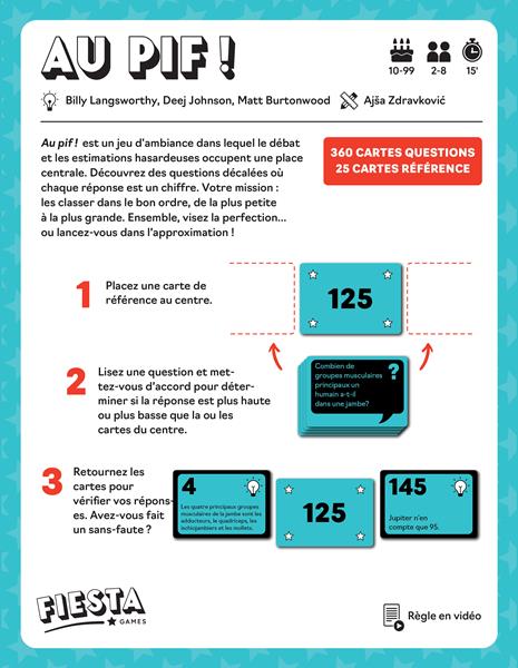 Fun Facts À travers des questions drôles et insolites, imaginez les réponses de vos équipiers et placez la vôtre correctement de façon à obtenir une ligne croissante ! Fun Facts est un jeu simple et amusant qui vous promet des fous rires et des anecdotes hilarantes sur vos amis... et sur vous-même ! Un jeu de société facile à apprendre pour les ...