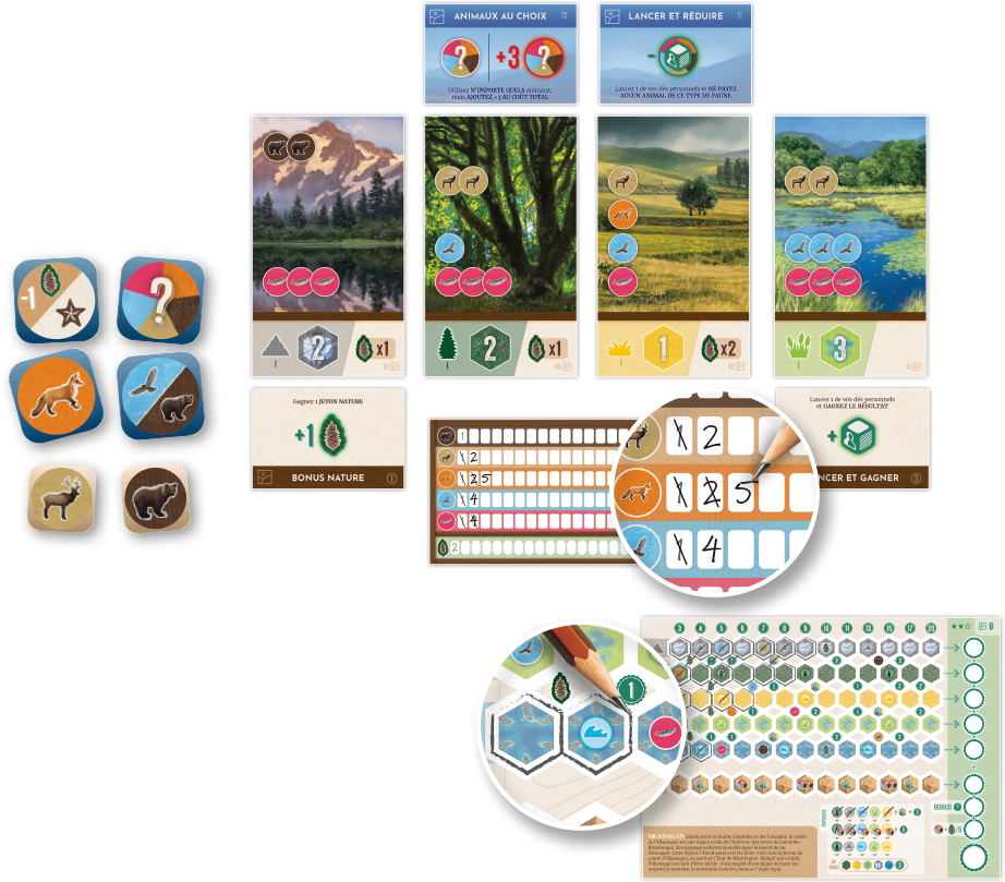 Wingspan Vous êtes des passionnés d’oiseaux: chercheurs, observateurs, ornithologues, ou collectionneurs cherchant à découvrir et attirer les plus beaux spécimens dans votre volière. Chaque oiseau posé déclenche une combinaison d’actions dans un de vos habitats. Chacun de ces habitats se concentre sur un aspect clé de la croissance de votre vol...