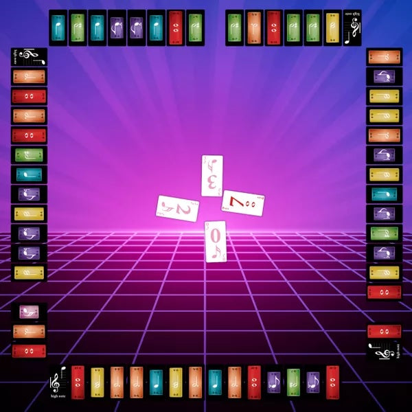50 Missions 4 piles de cartes au centre de la table. Jouez y des cartes de même couleur ou de même valeur.Les joueurs jouent ensemble pour recréer les 4 missions que vous demande le jeu. Pourrez-vous faire en sorte que toutes les cartes soient bleueus ou vertes ? Que toutes les cartes soient impaires ? Qu'elles velent toutes 3 ou moins ?Dès qu'u...