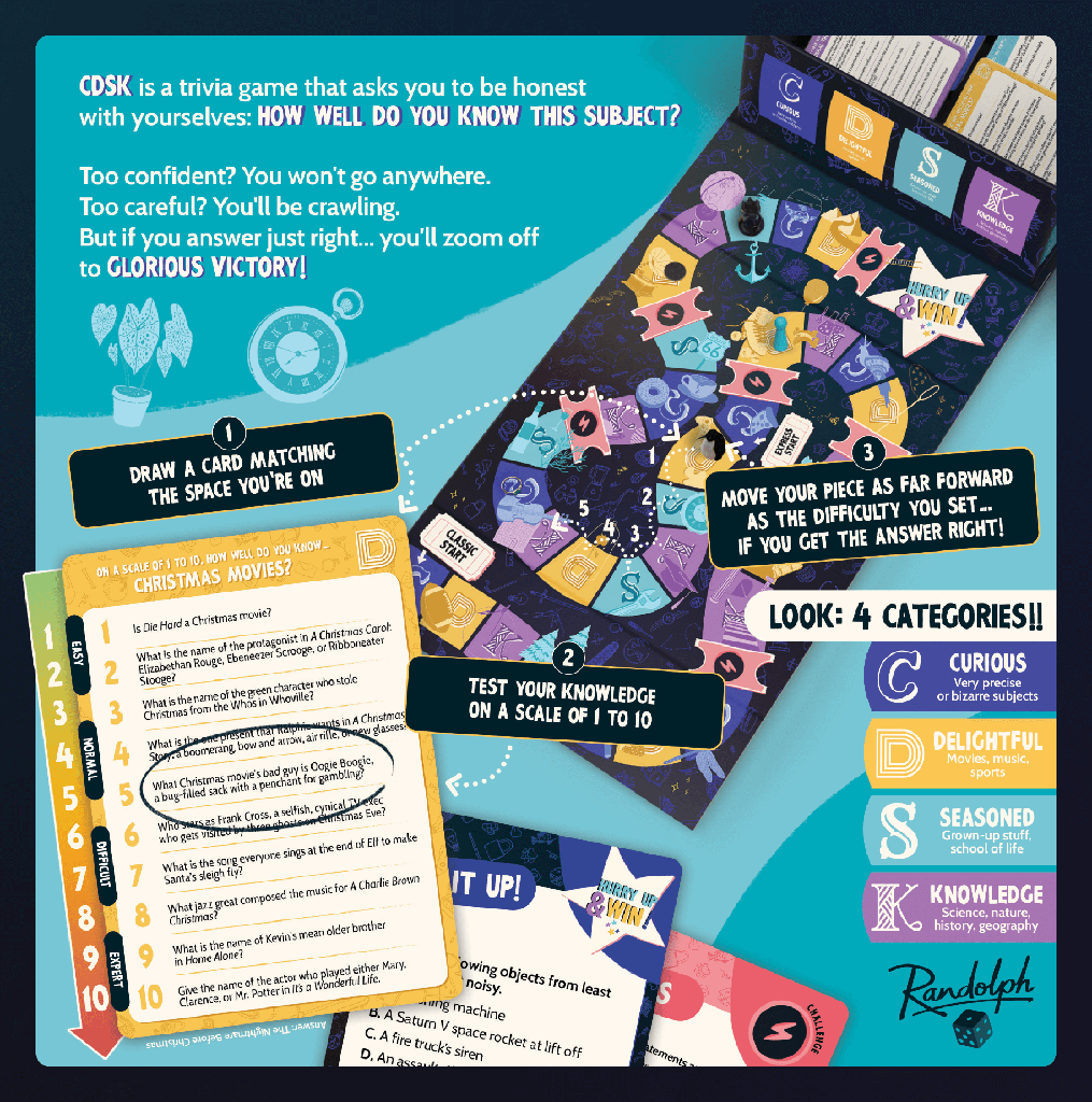 Hues and Cues What hue do you think of when we say “apple”? Hues and Cues is a vibrant game of colorful communication where players are challenged to make connections to colors with words. Using only one and two-word cues, players try to get others to guess a specific hue from the 480 colors on the game board. The closer the guesses are to the t...