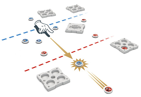 Klask Le jeu frénétique d'adresse et de rapidité où les joueurs doivent manoeuvrer leur attaquant à l'aide d'aimants puissants et tenter de diriger la balle dans le but adverse. Les joueurs devront aussi faire attention aux petits aimants blancs qui se retrouvent sur la surface du jeu. Si un aimant blanc se colle à votre attaquant, ça va. Mais s...