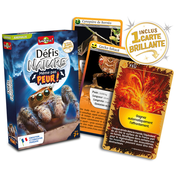 Défis Nature / Animaux rigolos Le joueur qui choisit la plus forte caractéristique remporte les cartes des autres joueurs. Un principe simple devenu un phénomène de cour de récré qui associe audace, réflexion, mémorisation et qui permet de sensibiliser à la beauté et à la fragilité du monde vivant. 7 + 20 min 2 - 6 Joueurs