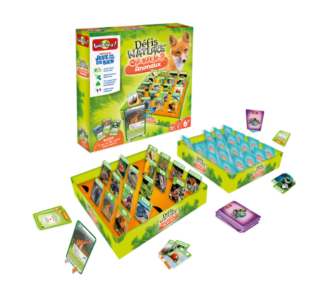 Défis Nature / Animaux rigolos Le joueur qui choisit la plus forte caractéristique remporte les cartes des autres joueurs. Un principe simple devenu un phénomène de cour de récré qui associe audace, réflexion, mémorisation et qui permet de sensibiliser à la beauté et à la fragilité du monde vivant. 7 + 20 min 2 - 6 Joueurs