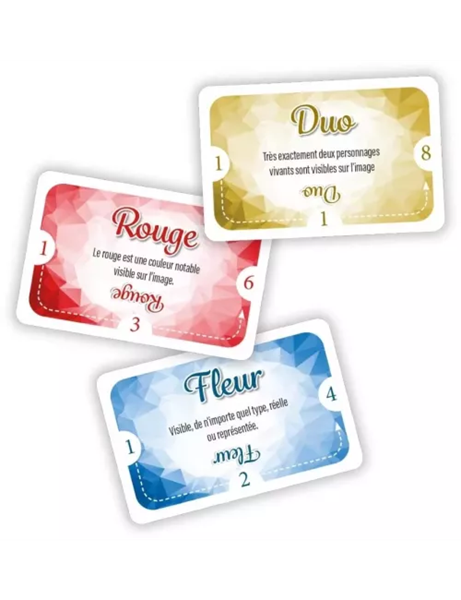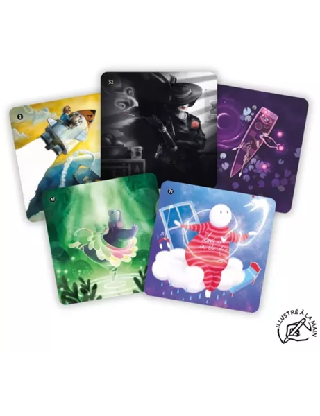 Dixit Une image vaut mille mots ! Dixit un jeu magnifiquement illustré, qui fait appel à l'imagination et à l'intuition. Pour trouver l'image clé, laissez-vous porter par vos idées ! Premier jeu édité par Libellud, Dixit vous propose un matériel de grande qualité aux graphismes somptueux. Le jeu comprend entre autre 84 cartes Images grand format...