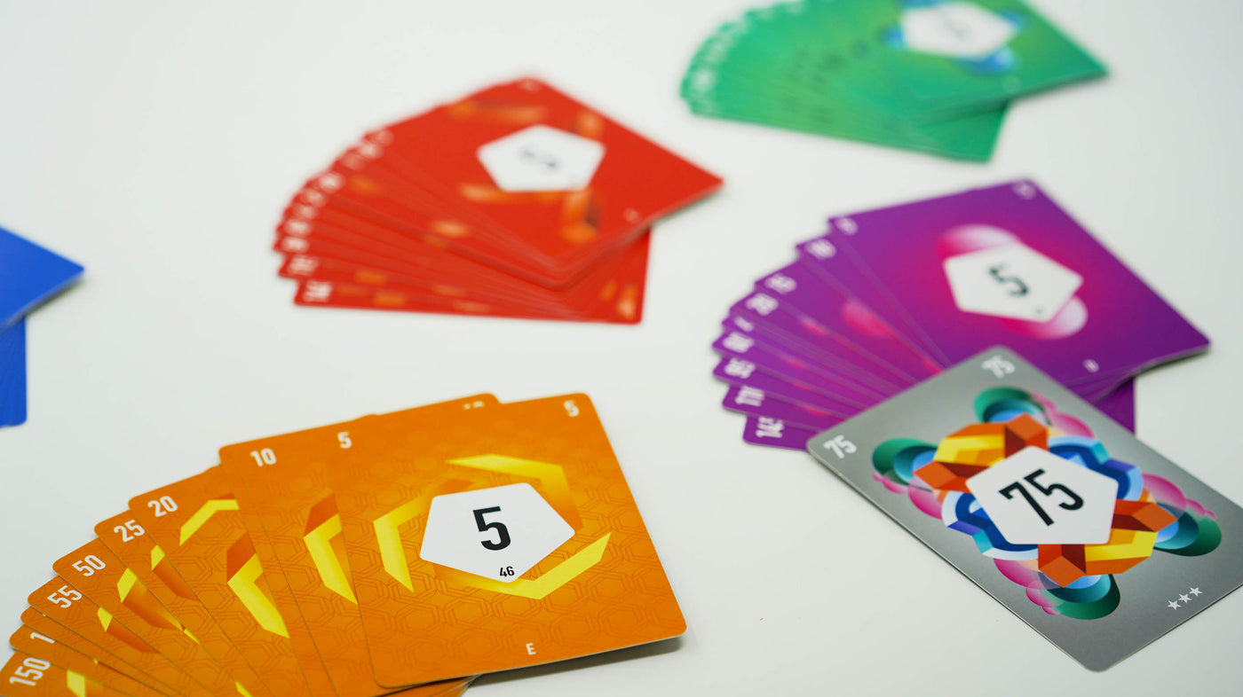 50 Missions 4 piles de cartes au centre de la table. Jouez y des cartes de même couleur ou de même valeur.Les joueurs jouent ensemble pour recréer les 4 missions que vous demande le jeu. Pourrez-vous faire en sorte que toutes les cartes soient bleueus ou vertes ? Que toutes les cartes soient impaires ? Qu'elles velent toutes 3 ou moins ?Dès qu'u...