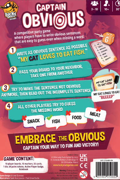 Taco Chat Poulet Poutine Pizza Gardez bien ces 5 mots loufoques en tête. Dès qu’une carte correspondant au mot annoncé est révélée, tapez la pile centrale. Le dernier ramasse tout! Soyez observateurs et vifs pour vous débarrasser de toutes vos cartes! La moindre erreur vous coûtera des cartes de pénalité: ni feinte, ni approximation dans ce jeu...