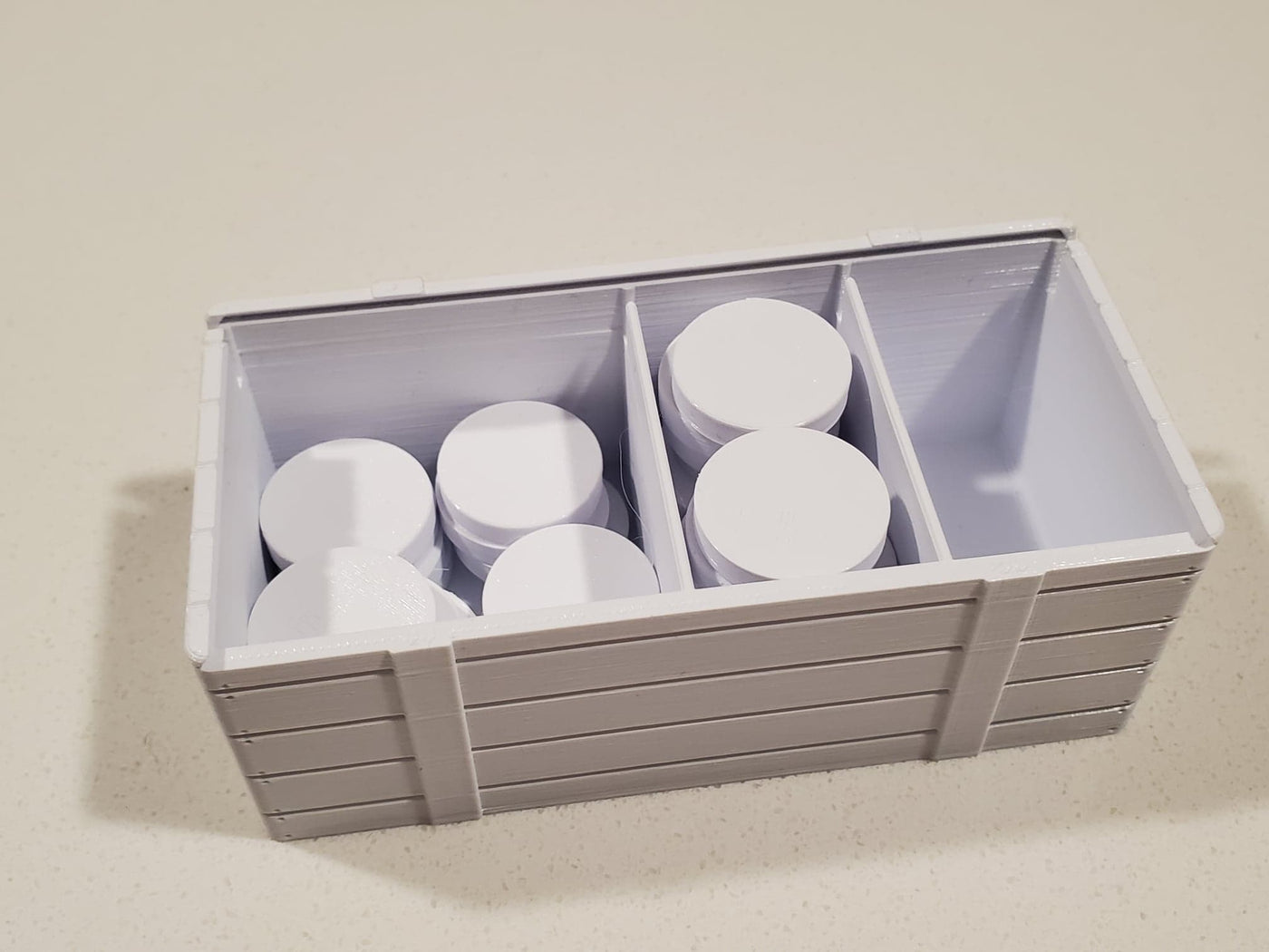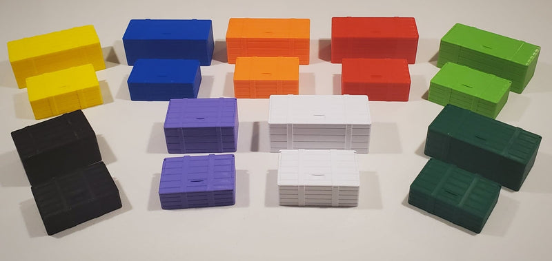 9 coffres de couleurs agencées à celles des ingrédients, incluant le coffre pour l'ingrédient le Chou des Fous de l'extension Les Sorcières s'en Mêlent. De plus, les coffres sont conçus pour permettre d'y inclure les jetons des deux extensions avec les capsules de protection