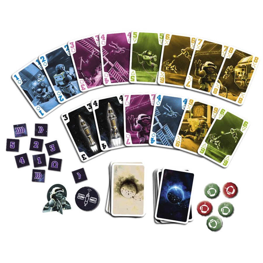 50 Missions 4 piles de cartes au centre de la table. Jouez y des cartes de même couleur ou de même valeur.Les joueurs jouent ensemble pour recréer les 4 missions que vous demande le jeu. Pourrez-vous faire en sorte que toutes les cartes soient bleueus ou vertes ? Que toutes les cartes soient impaires ? Qu'elles velent toutes 3 ou moins ?Dès qu'u...
