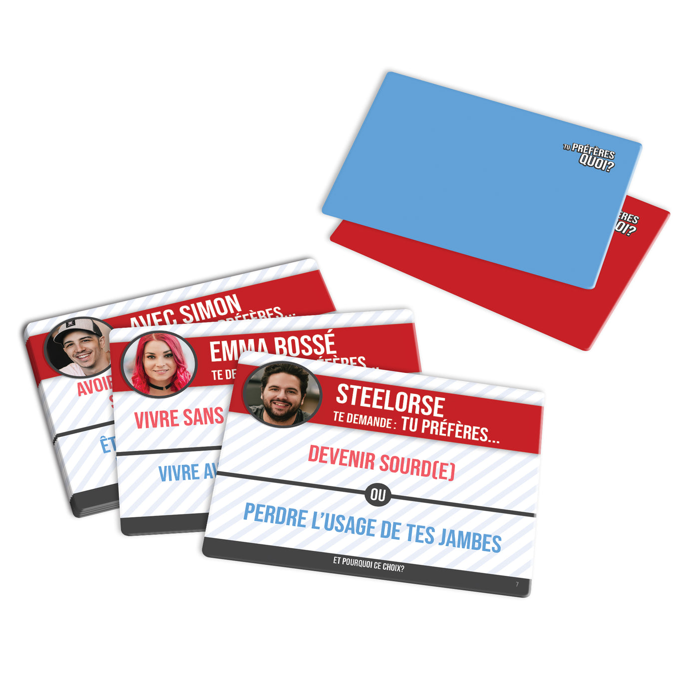 Ah Ouinnn ? Edition 25 + Un jeu pour apprendre à se connaître, parfait en date. L’idée de ce jeu consiste à deviner l’ordre de préférences des autres joueurs parmi 5 sujets. Plus vous devinez avec précision, plus vous gagnez de points. 1. Tire 5 cartes. 2. Devine l’ordre de préférence de ton ami(e). 3. Révèle tes choix. Dis Ah Ouinnn? J'pensais ...